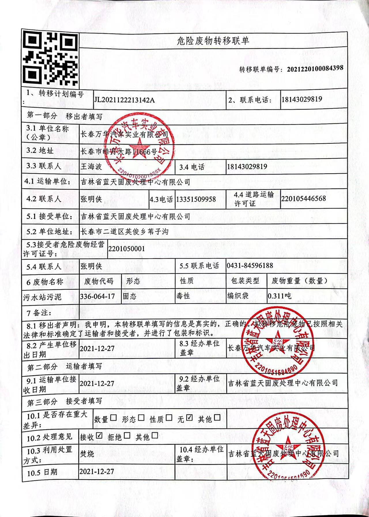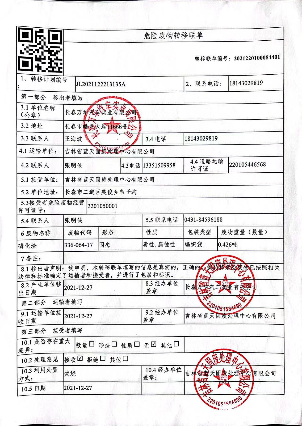 危險(xiǎn)廢物處置信息